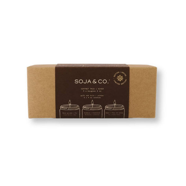 Discover this season’s exclusive scents with this festive, feel-good trio — ready to gift or to treat yourself, it’s the perfect way to explore our most popular winter fragrances! the set includes 3 x 4 oz candles, each with a 25-hour burn time: - Fir + Cactus Flower - Marshmallow + Clementine - Frozen Berries + Pine