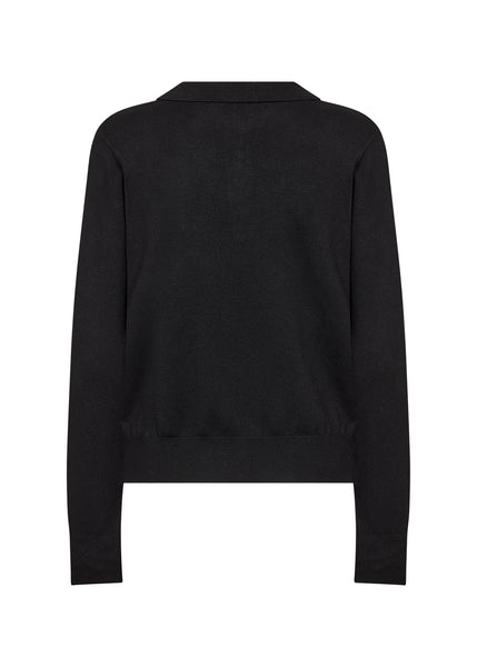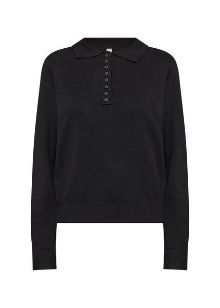 DOLLIE 799 Pullover features a classic collar with a button-up detail and ribbed cuffs. Pair it with tailored trousers or a casual skirt for a refined look.