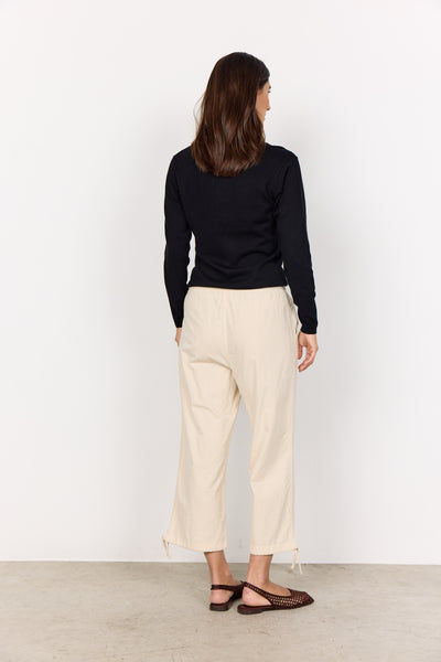 Cissie 1-C are pants in a lovely cotton quality. They have cropped legs, a nice loose fit and a elastic waist with tie strings. You can style these pants with your favorite blouse and a pair of flats for a nice everyday look.