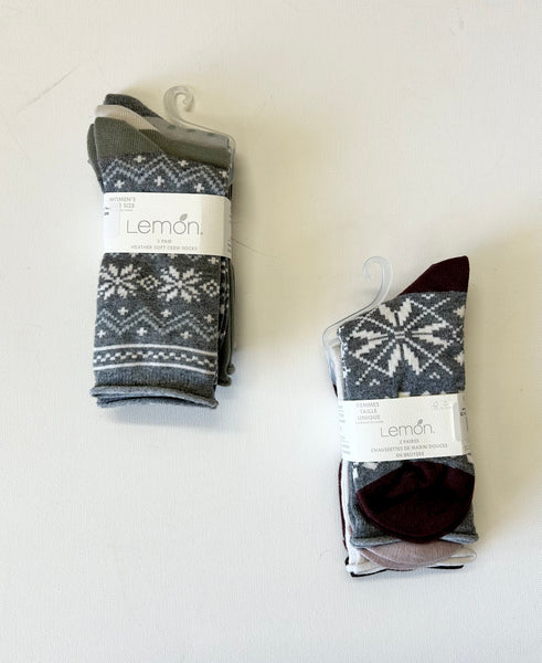 LEMON 3PK Women’s Heather Soft Non Terry Crew Socks