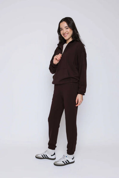 Your favourite sweatshirt, in everyone's favourite Luxe Fleece - now with the added coziness of a high mock neck and super cute 1/2 zip. Perfectly paired with the Laina Jogger for a matching set.