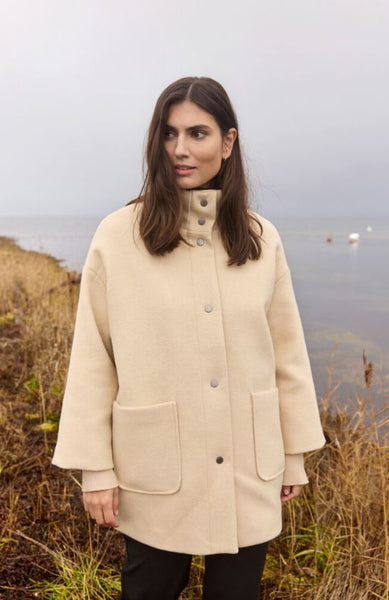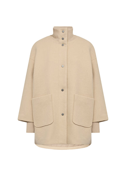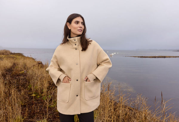 ASTA 8 is a Jacket crafted from 55% Polyester, 30% Wool, 6% Polyamide, 5% Acrylic, 4% Viscose. It features a high ribbed collar, snap buttons, large front pockets, and a slightly longer back hem. Pair it with slim pants and ankle boots for a balanced look.
