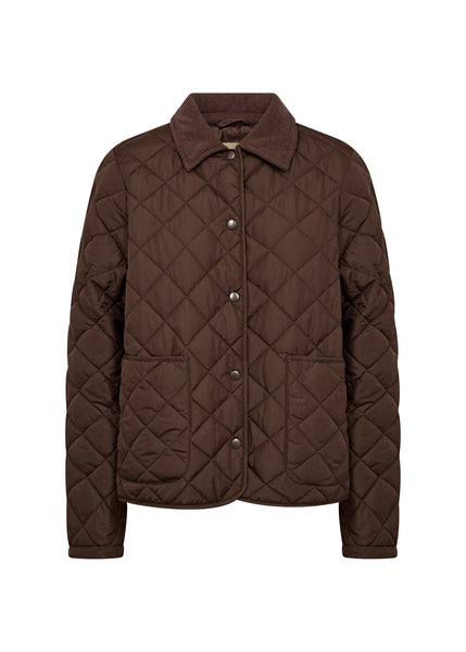 FENYA 66 is a jacket made from 100% polyester. It features a corduroy collar, snap buttons, and a quilted texture with two front pockets. Pair it with jeans for a casual outing or layer over a dress for added warmth.