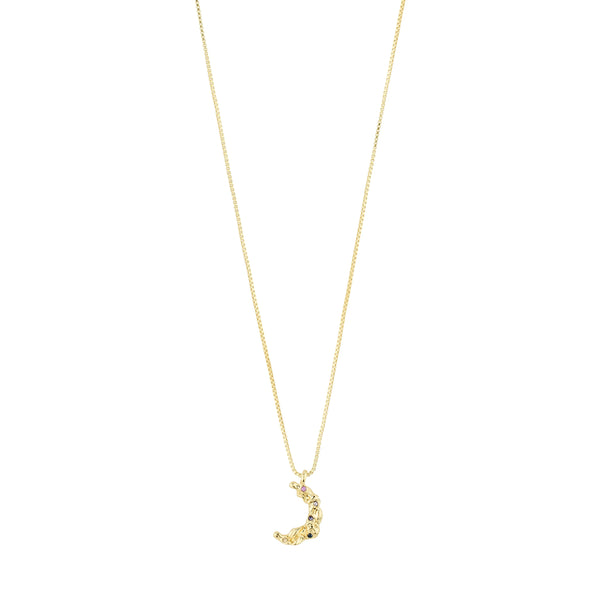 Shoot for the moon! Gold-plated necklace with small half moon symbol. The pendant has a dreamy vibe and an uneven surface that gives the necklace a unique and sweet touch. With a length of 40 cm + 12 cm extension chain, you can style the chain as you like, for both simple, casual looks and dressed-up occasions. And guess what? It is made from 98% recycled material, so you can shine without compromising the environment.