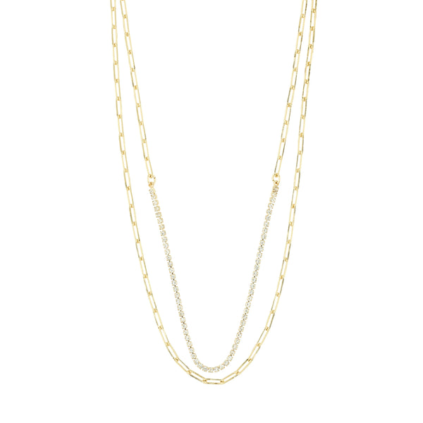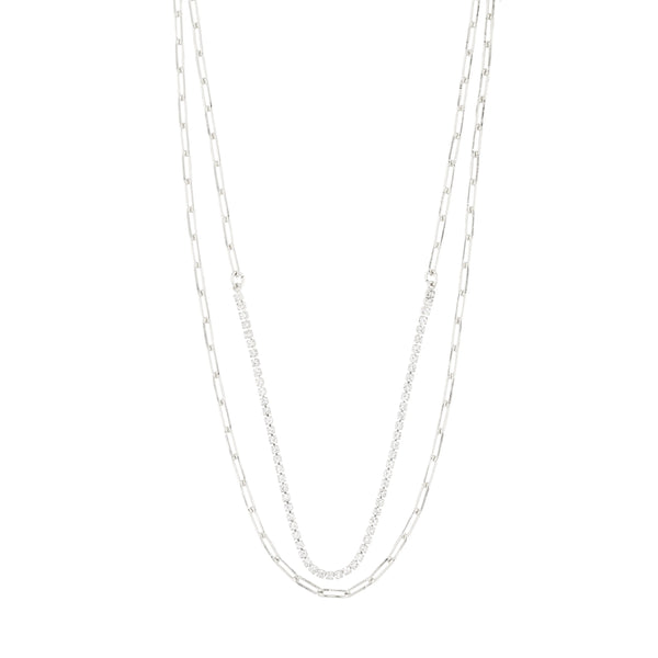 Add a little sparkle to your day with the 2-in-1 necklace from Pilgrim's ROWAN collection. A delicate combo of sparkling crystals and a sleek and delicate cable chain with oval links. The chains are silver-plated and measure 38 and 40 cm + 9 cm extension chain. Style them in a trendy layered look that embodies classiness in a stylish and simple way.