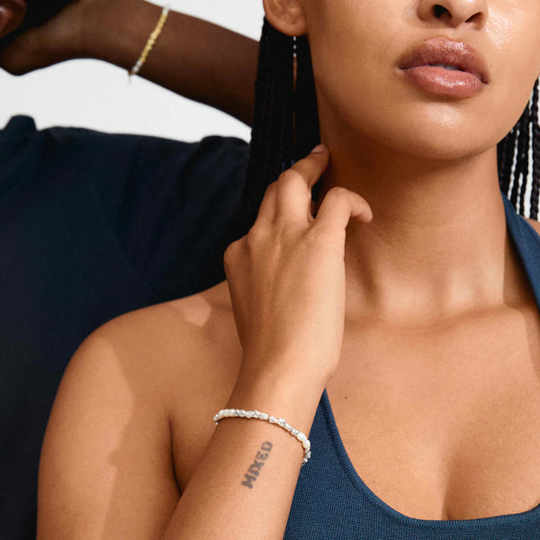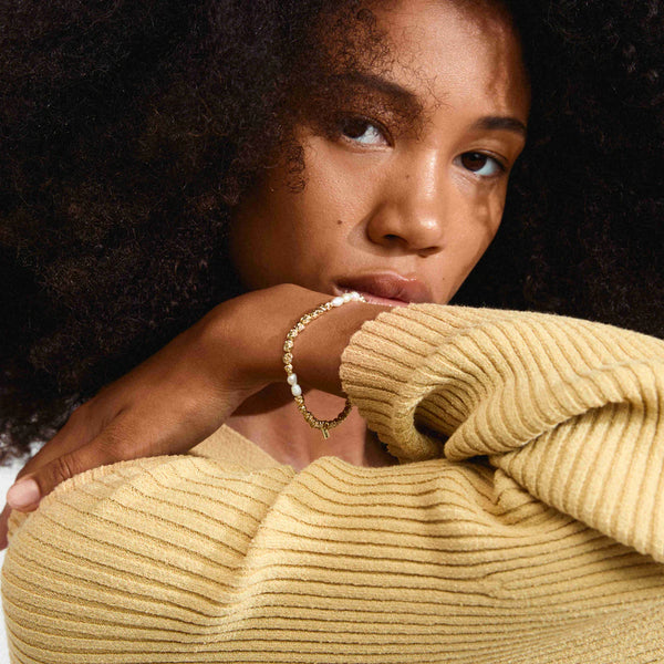 Trust the tide of your dreams! Gold-plated or silver-plated TIDE bracelet from Pilgrim's IMAGINATION collection. The bracelet is crafted with an organic, free-flowing design, it features luxurious gold-plated or silver-plated beads combined with a vibrant mix of genuine freshwater pearls and shimmering mother-of-pearl glass beads. Elevate your style with this playful and elegant accessory! Let the details of this bracelet shine and stack it with others for a fresh, personalized spring look. Wrap your wrist in this season’s must-have accessory and feel great knowing it's made from at least 88% recycled materials, with our planet in mind.