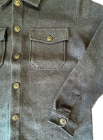 Classic navy shacket for men. Features functional front pockets and button closure.