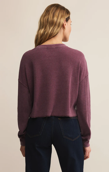Easy, breathable, and just the right amount of relaxed. This mineral-washed, cropped thermal features soft waffle knit and subtle seaming details that elevate your everyday rotation.