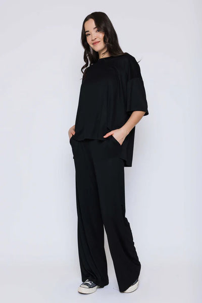 This oversize tee is such a staple. The sueded rib fabric has a beautiful drape and a brushed treatment that gives it a soft, luxurious feel. Features side slits and a hi/lo hem, for beautiful drape and movement - a simple tee, elevated!